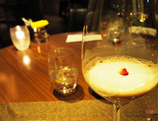 中にチョコを忍ばせたボンボン状のカリフラワーは、口の中で弾ける食感とともに芳醇なチョコレートソースが溢れだし、「バレンタイン・ショコラディナー」の幕開けを官能的に演出する。