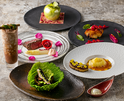 フランスで130年以上の歴史を誇るショコラティエ「Weiss(ヴェイス)」のチョコレートをふんだんに用いた「バレンタイン・ショコラディナー」は、その名も「口説かれディナー」と命名され、気持ちを高揚させるカカオの魔法が一皿ごとに増していき、二人の気持ちを近づけるロマンティックなメニュー構成となっている。