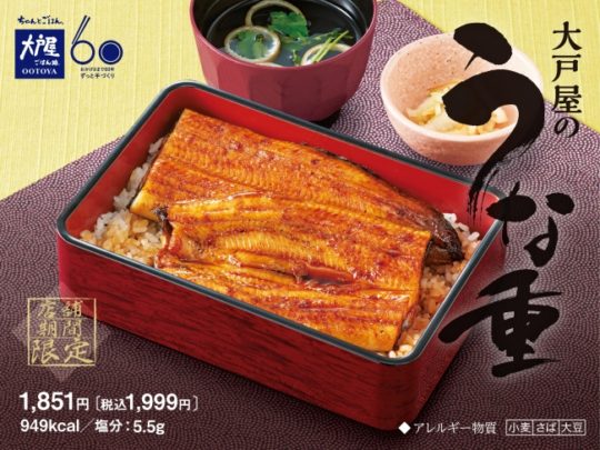 株式会社大戸屋では、2018年1月29日(月)より2018年3月末まで、店舗・期間限定で『大戸屋のうな重』を販売する。