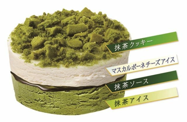 3層目には、調整に調整を重ねて作られた「マスカルポーネチーズアイス」を使用。ミルクのようなコクを感じることができ、クセのない味わいのマスカルポーネチーズを使用することで、抹茶の風味を引き立てて、上質かつ奥行のある旨味が全体のバランスを格上げします。こだわりの「マスカルポーネチーズアイス」と、抹茶の様々な旨味が織りなす、絶妙なマリアージュを楽しめるようになっています。
