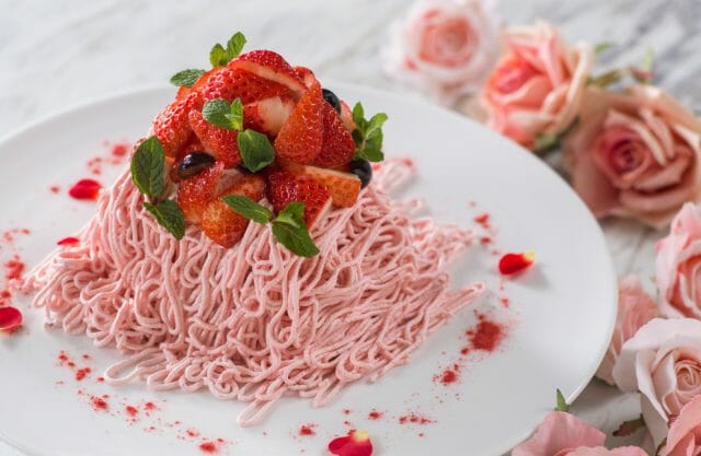 モンブラン風に絞ったいちごクリームがインパクト大の見た目。