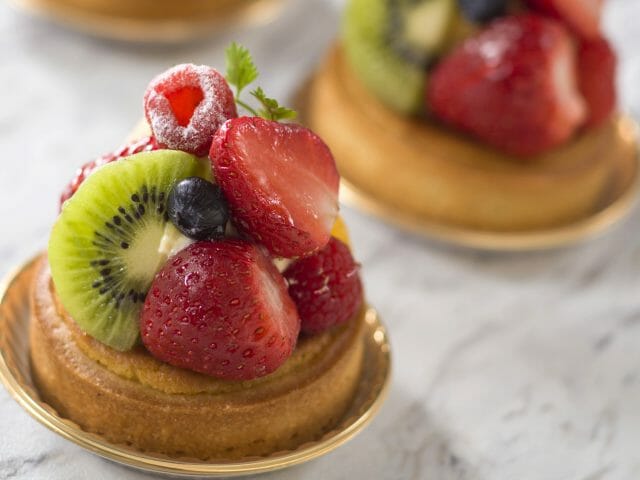 たっぷり飾った華やかでフォトジェニックなタルトケーキとなっています。