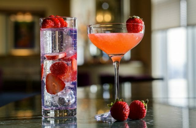 「ザ・ラウンジ&ケーキショップ」では、いちごを使った3種類のケーキとパフェ、スカイバー「トップ・オブ・ザ・クリスタル」ではカクテル2種を用意します。