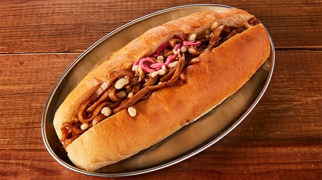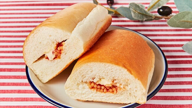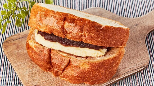 もちっとした食感のバゲットをスライスし、安定人気の組み合わせ「粒あん」と「マーガリン」をサンドしました。小豆の風味豊かな粒あんと、マーガリンの程よい塩味があとひく美味しさです。
