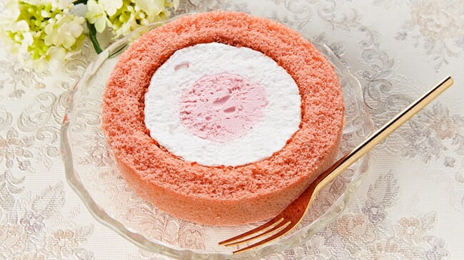 しっとりとした食感のスポンジ生地にストロベリークリームとミルク風味のホイップクリームを合わせています。甘酸っぱいストロベリークリームとホイップクリームのまろやかな味わいがバランスよく引き立っています。