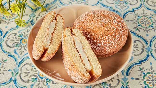 外はサクッ、中はふわっと焼いたブッセに、チーズクリームをサンドしました。