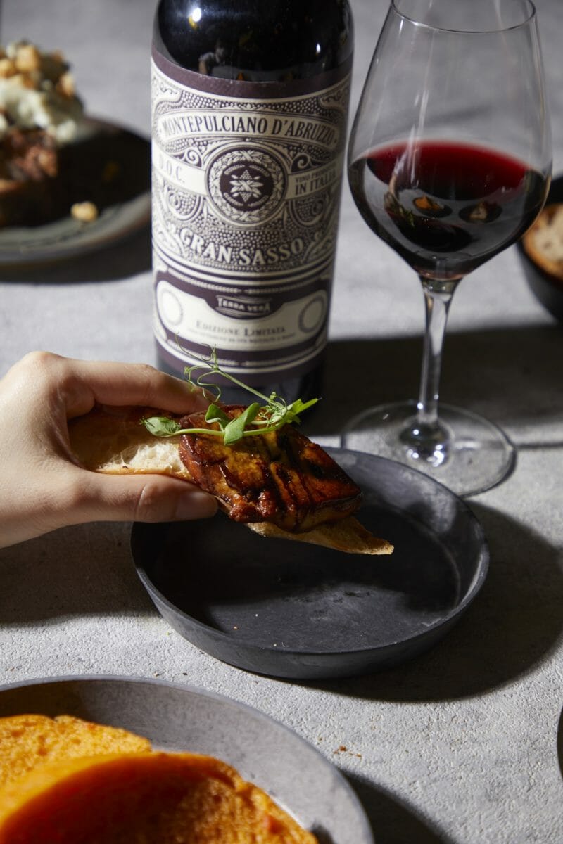 ファクトリーカフェで作る前菜パンはところどころにイタリア料理技法がちりばめられており、ソムリエ厳選ワインと相性抜群