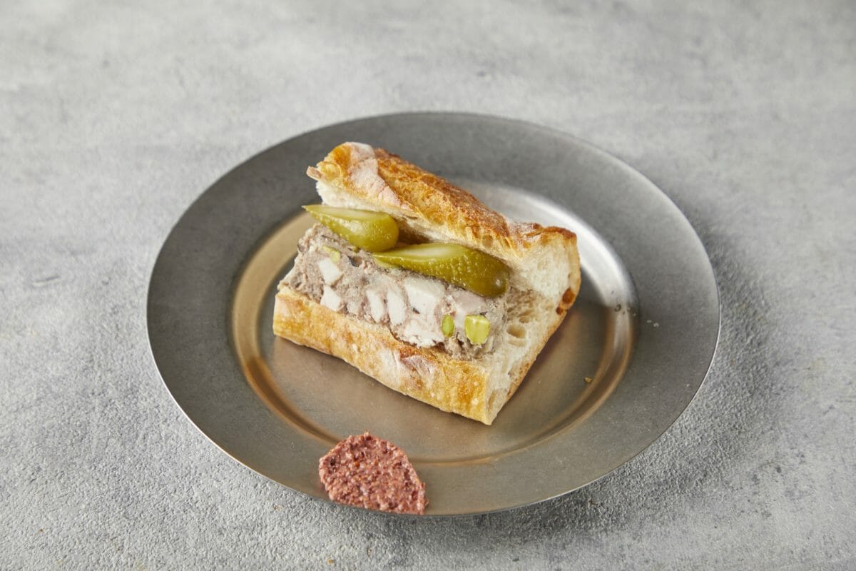 ワインに漬け込んだ極粗挽き肉作った厚切りパテサンド