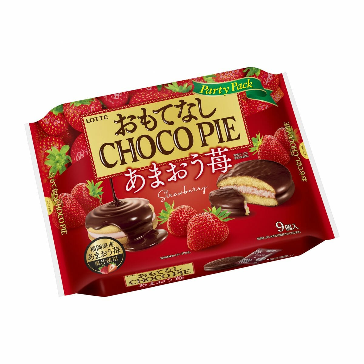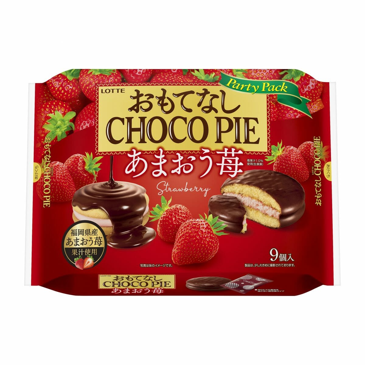 株式会社ロッテはロングセラー「チョコパイ」から、『おもてなしチョコパイパーティーパック<あまおう苺>』を新発売します。みずみずしいあまおう苺の味わいが楽しめる9個入りのチョコパイパーティーパックとなっています。