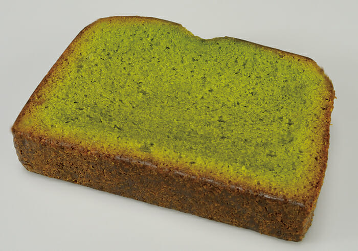 ●商品特長:風味豊かな最高級の静岡県産の一番茶のみを使用しています。本格抹茶を贅沢に使用し、しっとりとした食感で濃厚な味わいのパウンドケーキに仕上げました。