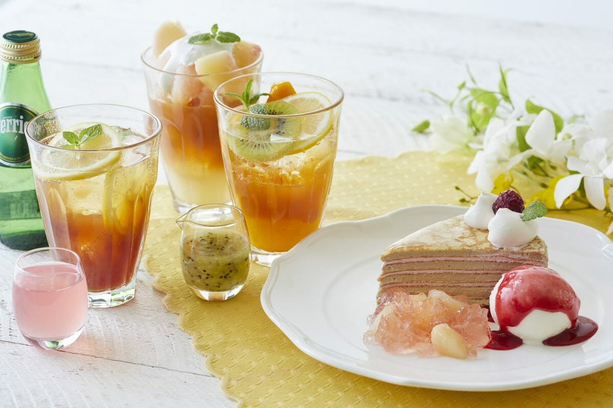 紅茶を使ったティースイーツ3種が5月11日(火)から登場。茶葉の香りが引き立つアールグレイホイップとラズベリーホイップをしっとりとしたクレープで10層重ねた「アフタヌーンティー40周年記念 アールグレイのミルクレープ 白桃ジュレ添え」のほか、ティールーム4店舗限定で2種のメロンにレモンが香る紅茶のジュレを合わせた「アフタヌーンティー40周年記念 ダブルメロンとレモンティーのパフェ」、ラブアンドテーブル全店で発酵バターとライ麦を使用したこだわりのクレープにフルーツをトッピングしアールグレイソースでシュゼット風に仕上げた「アフタヌーンティー40周年記念 6種フルーツとアールグレイのティーシュゼット」を発売します。