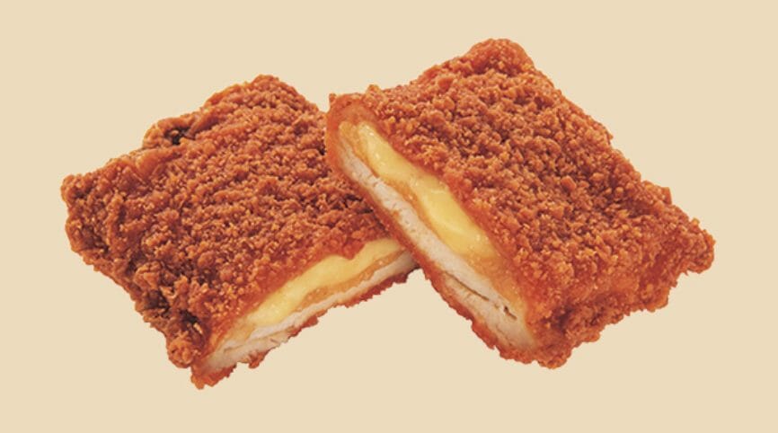 「明太チーズインファミチキ」は、ジューシーなファミチキに濃厚なチーズと「かねふくの明太子」をサンドした商品。