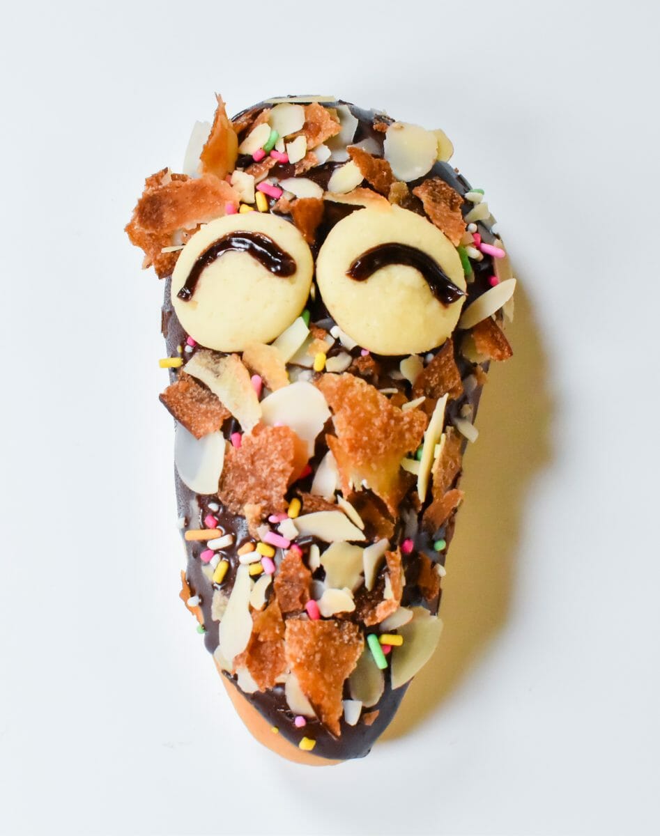 チョコ味パンのサクサクデニッシュ生地をトッピングした可愛いミノムシパンとなっています。