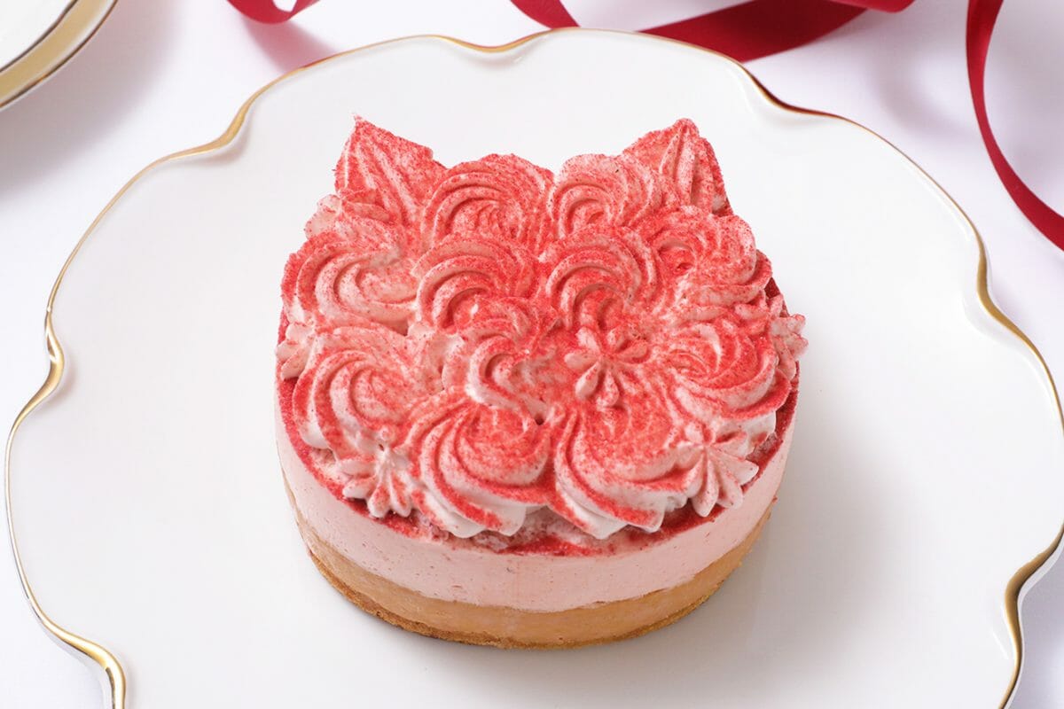 ねこねこチーズケーキに期間限定でいちごフレーバーが登場します。いちご風味のホイップクリームを絞り、ストロベリーパウダーで華やかに仕上げました。爽やかな酸味と、程よい甘みがひとつになって口の中でまろやかに広がるよういなっています。上から下までいちご尽くしな、贅沢なねこねこチーズケーキとなっています。