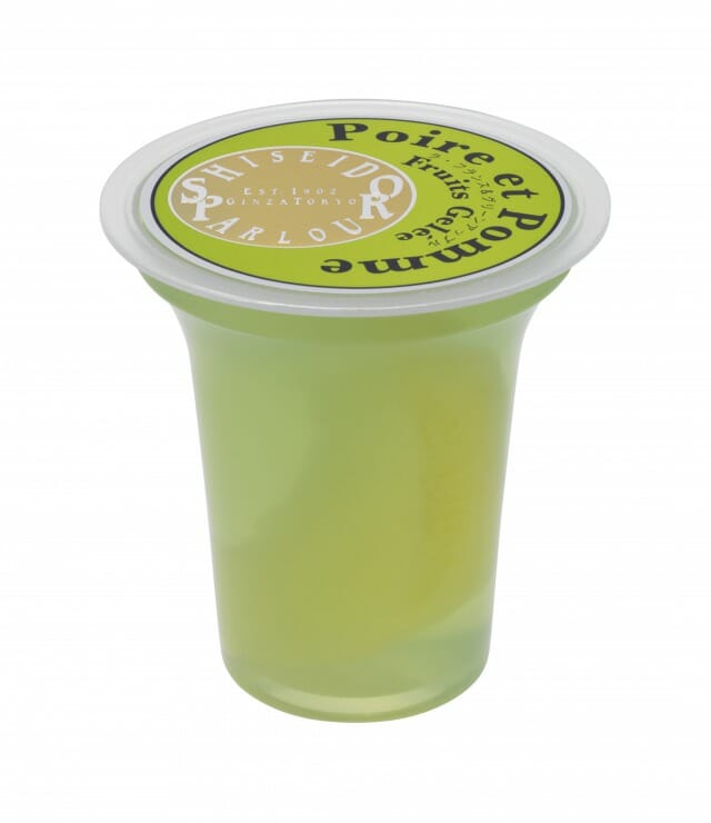 芳香な香りの山形県産ラ・フランスの果肉を、ほろっと繊細な口どけで爽やかな風味の青森県産青りんご・王林果汁のゼリーでとじ込めました。