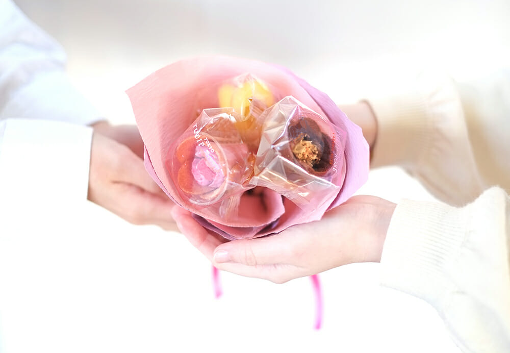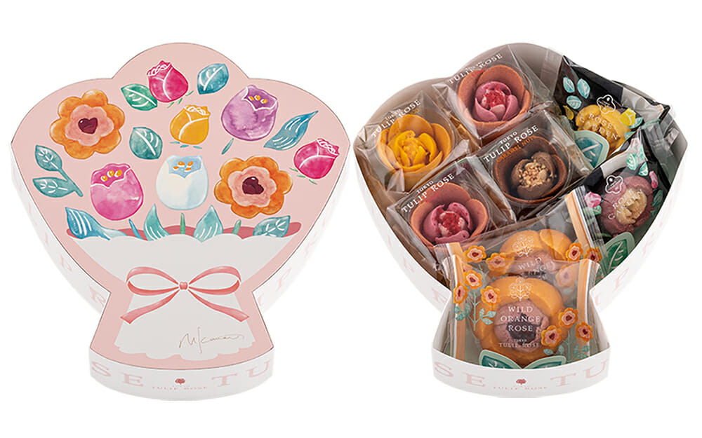 いつでも気軽に花束を贈ってほしい、そんな想いからできた『チューリップローズ 花組』。TOKYOチューリップローズのスイーツの花々をあふれるほどつめた、華やかな花束のようなボックスセットとなっています。