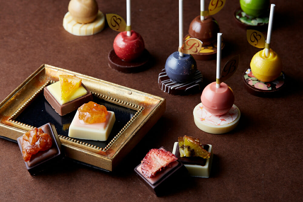 国産フルーツを使用したガナッシュと自家製ドライフルーツを組み合わせた「フルーツショコラ」。
