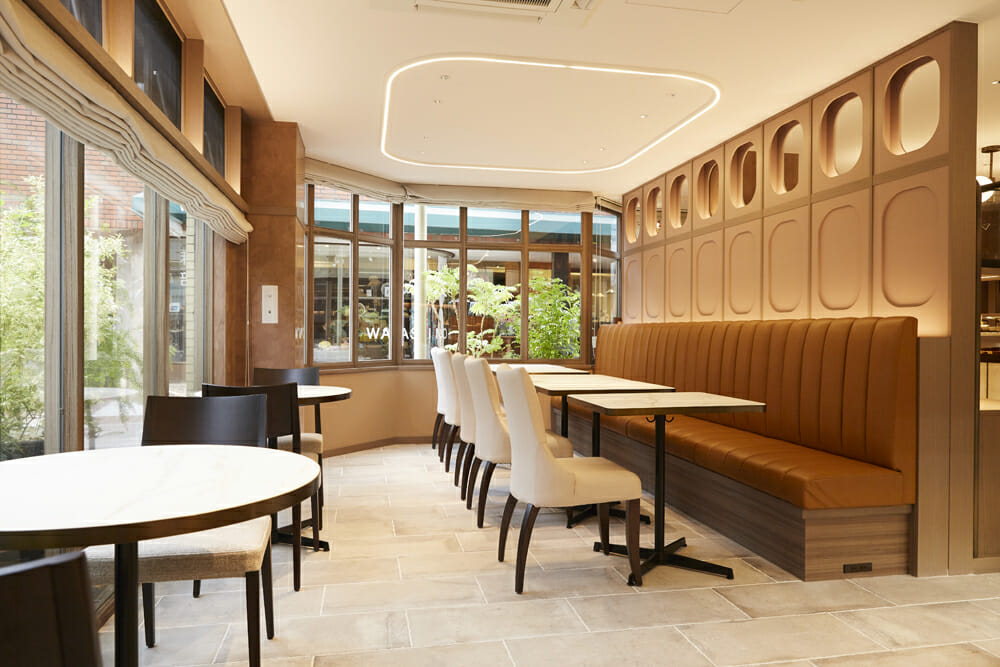 店内は温かみのある落ち着いたアーバンナチュラルな空間で、お気に入りのショコラを選んだり、カフェでデザートを味わうその時間と空間もゆっくりと楽しめるよう設計しました。