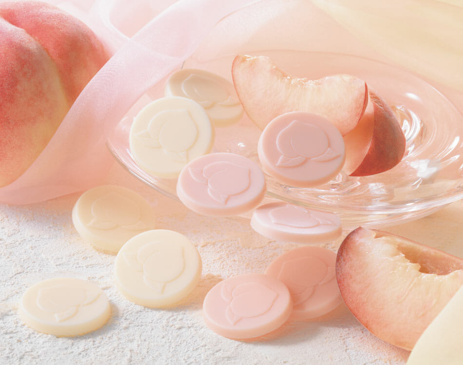 ~みずみずしい国産白桃の味わいを2種類のチョコレートに~
