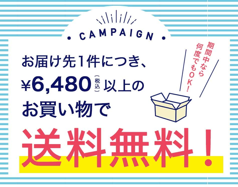 届け先1件につき、商品代金6,480円(税込)以上の購入で送料無料!