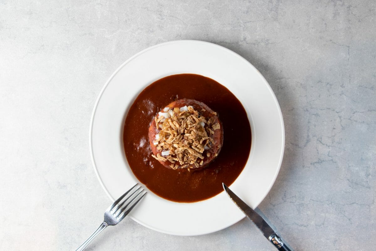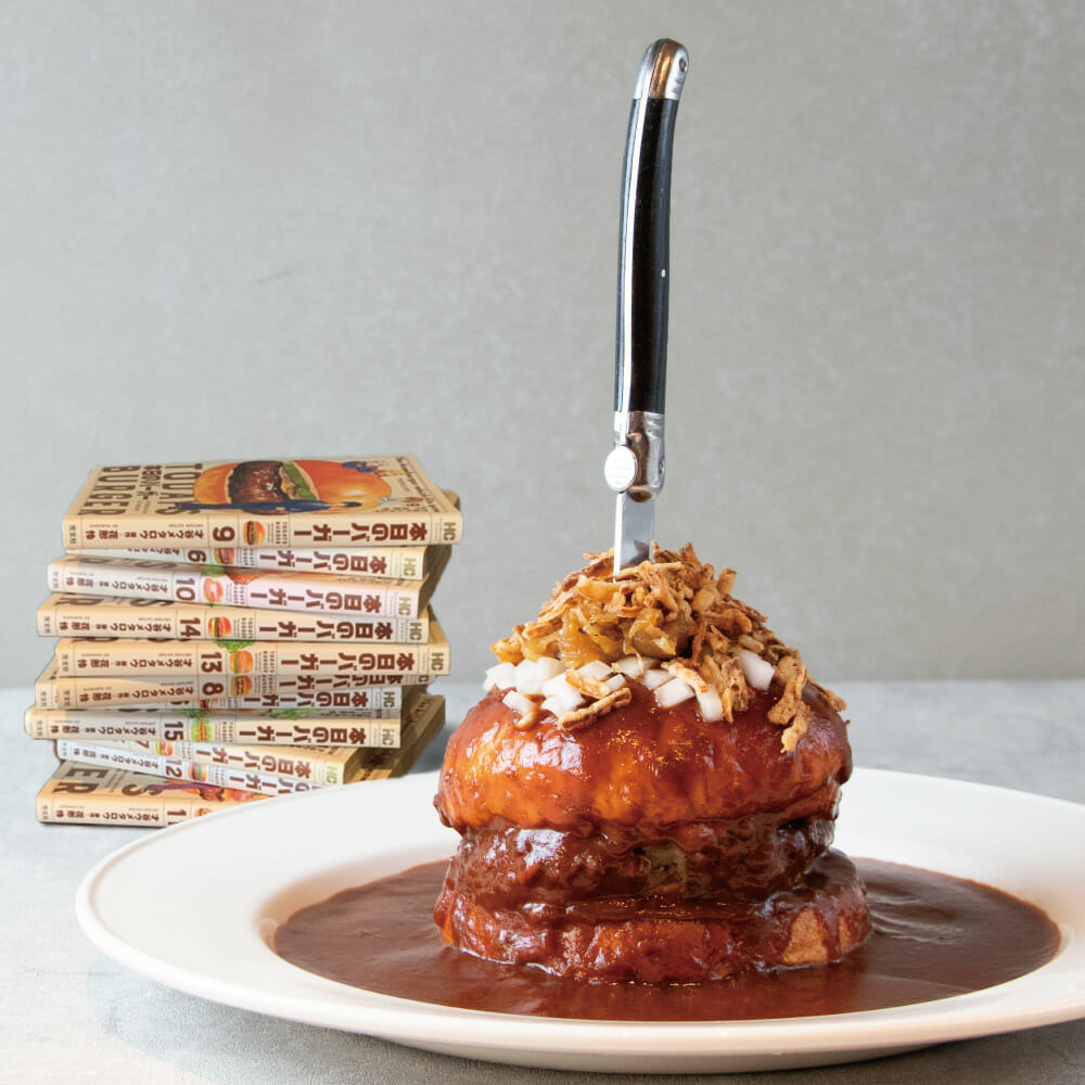 「本日のバーガー」に登場するのは、数々の世界のご当地バーガー。作中では、ハンバーガーの具材やレシピの紹介だけでなく、その誕生に至った背景にある各国の食文化や歴史まで、ハンバーガーの魅力に様々な角度から迫っています。コロナ禍から旅行がままならない昨今、食を通して海外旅行の疑似体験をしてもらいたい!という、ハンバーガーを看板メニューに掲げる「ハードロックカフェ」の熱い想いと、「本日のバーガー」のテーマが合致したことから、この度のコラボレーションが実現しました。コラボレーション前半となる第1弾で登場するのは「ボフサンドイッチ」。オランダ語で牛肉のサンドイッチという意味のデンマークのご当地ハンバーガーとなっています。グレイビーソースをハンバーガーの上にかけ、さらにたっぷりの玉ねぎをトッピングしたハンバーガーで、ナイフとフォークで楽しむ異色尽くしの一品となっています。
