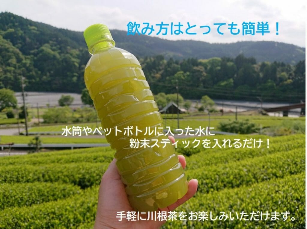 ・タバコサイズの箱に入った川根本町産の粉末緑茶スティック(1g×8本入り)