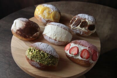 イタリアのラツィオ州、ローマを中心に愛される伝統菓子「マリトッツォ」は、丸い形状で軽い食感のパン生地にたっぷりの生クリームをサンドしたスイーツです。イタリアでは朝食としてカプチーノと一緒に食べるのが一般的。ローマ商店で提供する「マリトッツォ」は、使用しているパンはブリオッシュのような軽く甘い生地なので朝食としてはもちろん、おやつにもぴったりのスイーツです。サンドされているあふれんばかりのたっぷりのクリームは、生クリームの他、店内で手作りした自家製マスカルポーネ入りのため、他店と一味違った「マリトッツォ」を楽しめます。種類は、ローマ~オレンジマーマレード~、ピスタチオ、シチリア~ハニーレモン~、ティラミス、ラムいちじく&キャラメル、丹波産いちごの6種類用意しており、色々な味わいを楽しめるのもポイントです。季節にあわせてフルーツを変更予定です。