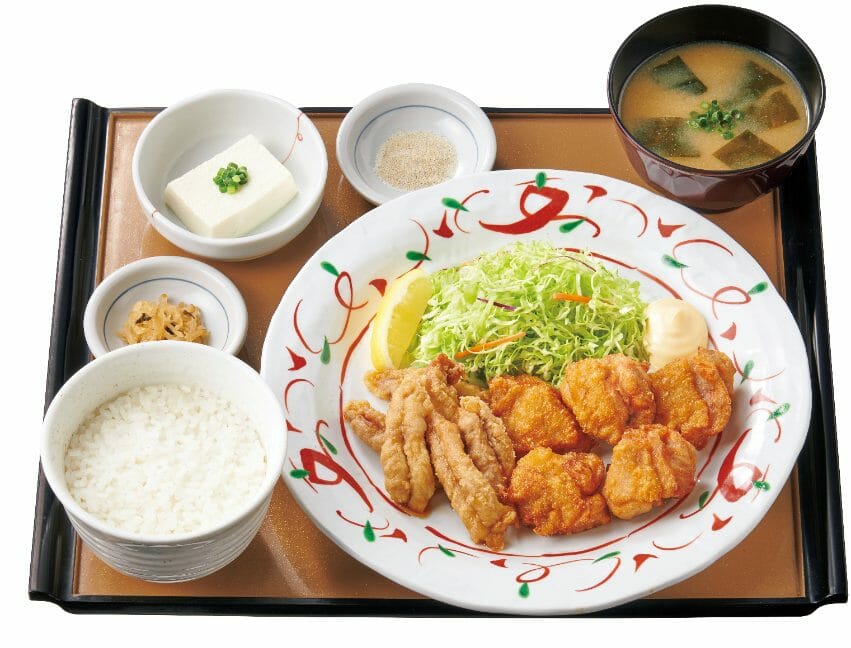 このたび「やよい軒」では、鶏の希少部位である“せせり”のから揚げとジューシーな焼き餃子を、人気の鶏もも肉のから揚げに組み合わせた、『せせりと鶏もものから揚げ定食』790円と、『鉄板餃子とから揚げの定食』860円を、5月11日(火)より新発売します。また、同日より『から揚げ定食』を新価格690円に改定します。