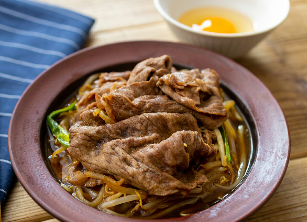 一般的なすき焼き同様、生卵につけていただきましょう。