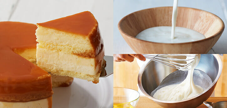 チーズスフレとプリンを組み合わせたケーキが新登場。