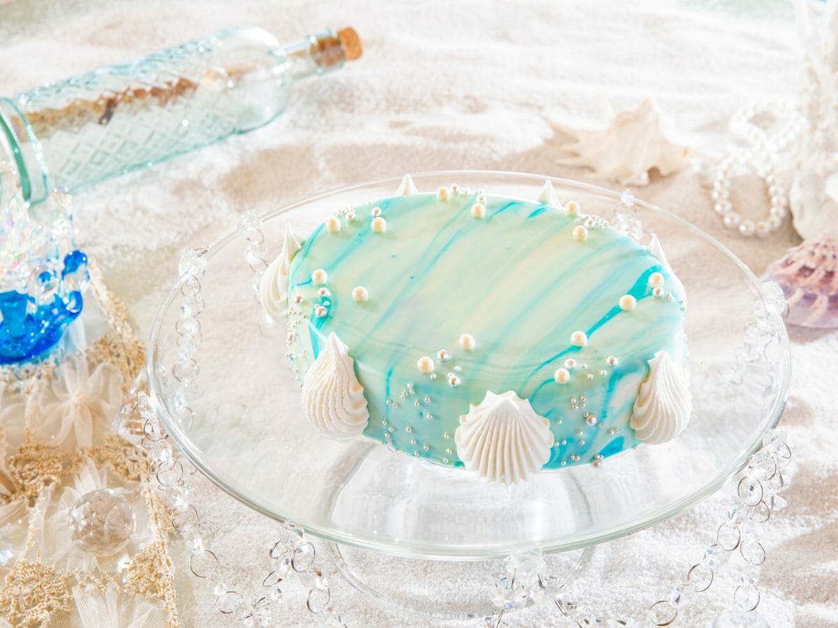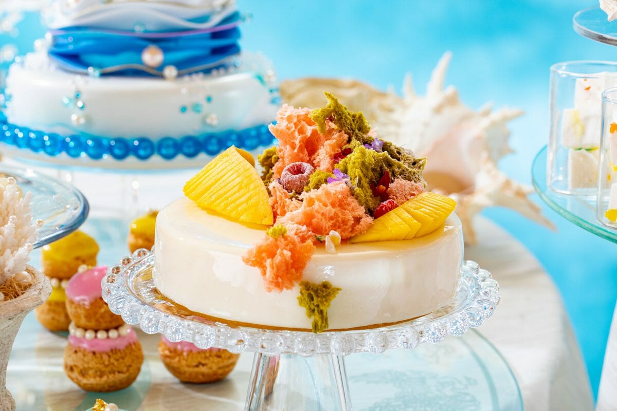 空と海の境界線が溶け合う美しい碧色の世界。夏を待ちわびた人魚姫たちがそれぞれの宝物を持ち寄って催す優雅なスイーツ・パーティーをイメージしたこの度のスイーツフェアでは、ラウンジに一歩足を踏み入れた瞬間から幻想的な海の中を思わせる空間で、マーメイドから着想を得たフルーツをふんだんに用いた涼し気な夏の新作スイーツを楽しめるようになっています。