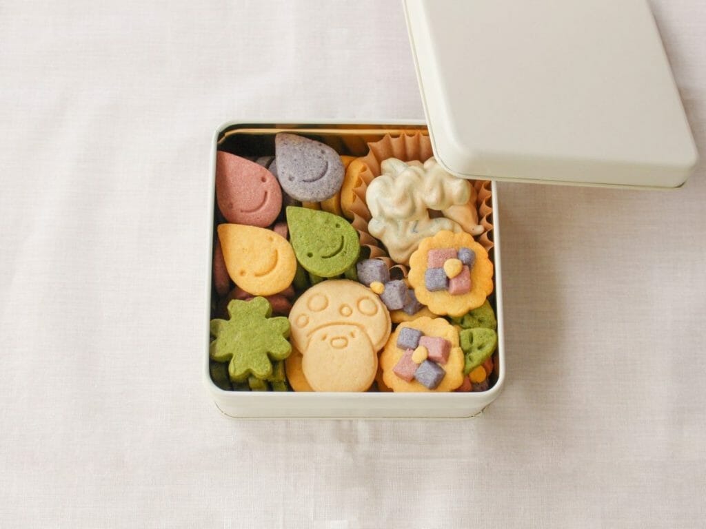 同店の商品コンセプトは、体に優しく、食べて美味しい、見て楽しいお菓子、オリジナルストーリーも缶と一緒に届けます。