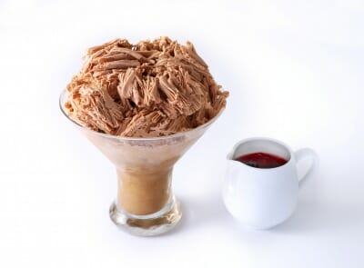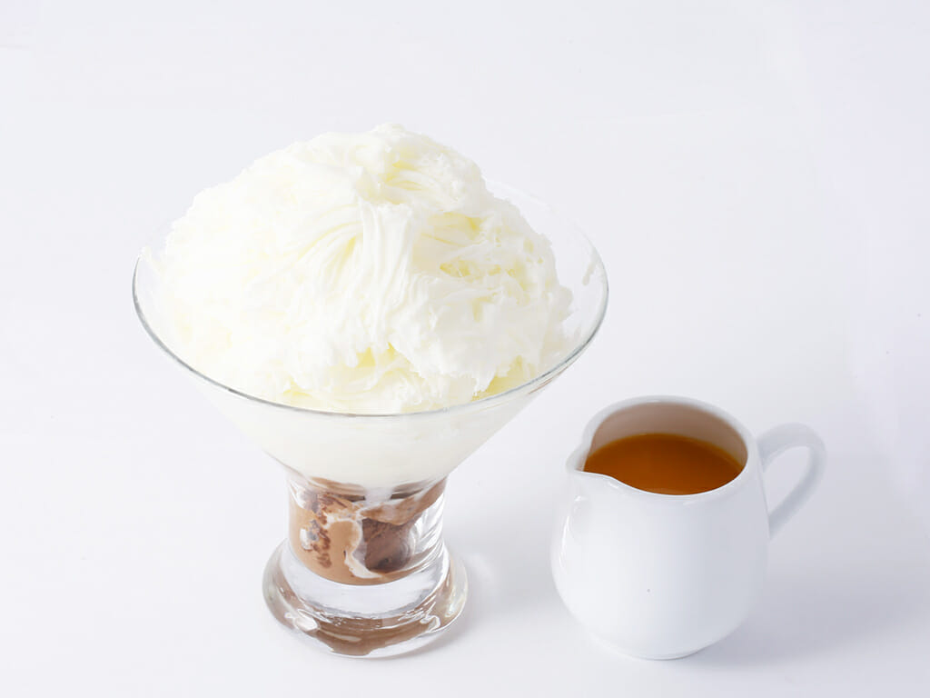 ヴィタメールのグラス ピレ デセールは、ふわっと軽く口に入れるとはらりと溶けてしまう、まるで雪のような繊細な食感が特徴。夏の間しか食べられないメニューなので、毎年心待ちにしている方が多い人気商品です。