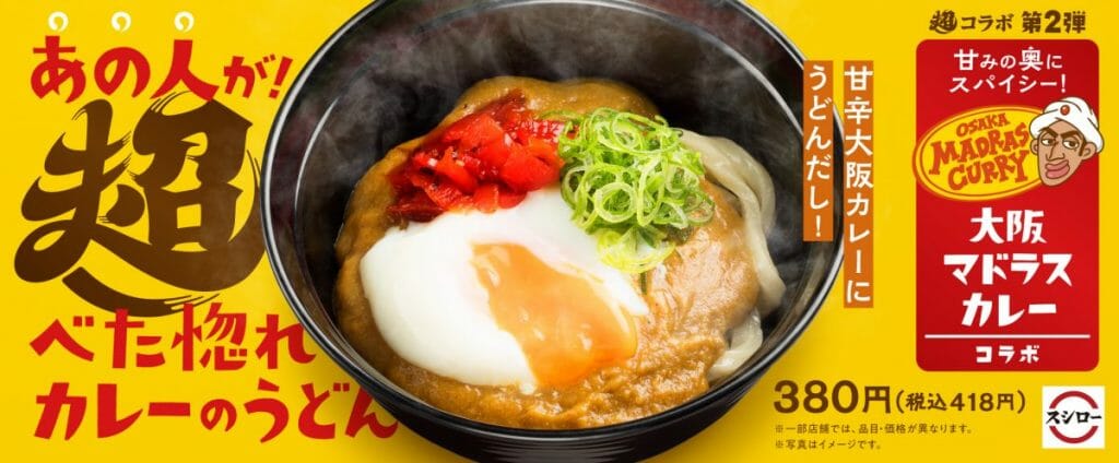 株式会社あきんどスシロー(本社:大阪府吹田市、代表取締役社長:堀江 陽)は、FOOD & LIFE COMPANIES全ブランド合同キャンペーン『あっぱれ、日本!超すし祭』と同時に開催している『超コラボ3連発』の第二弾商品として、東京に3店舗を構える大人気カレー専門店「大阪マドラスカレー」監修の「あの人が!超べた惚れカレーのうどん」を6月2日(水)より、全国のスシローにて期間限定で販売します。