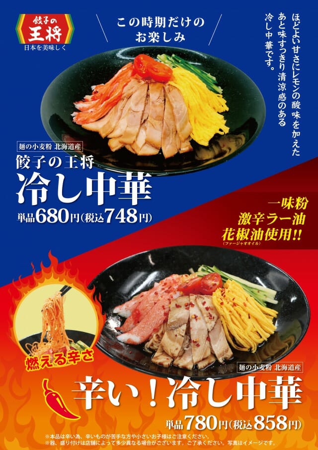 「餃子の王将」を運営する株式会社王将フードサービス(京都市山科区/代表取締役社長 渡邊 直人)は、夏の時期に向け、定番の「餃子の王将 冷し中華」に加え、新たに「辛い!冷し中華」をラインナップしました。