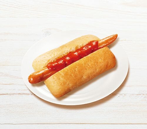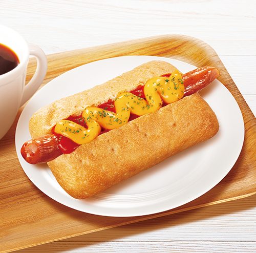 ボリューム感のある“チャバタ”に、天然羊腸を使用したあらびきのソーセージを挟んだシンプルなホットドッグです。バターの風味がアクセントのケチャップを合わせた、朝にぴったりの商品となっています。