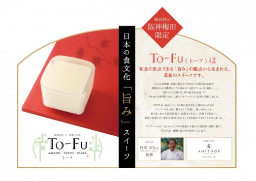 「TO-FU」は 和食の原点である’旨み’ の観点から生まれた、革新のスイーツで約1年にわたり共同開発された。和食×洋菓子の新たな切り口のスイーツとなっている。