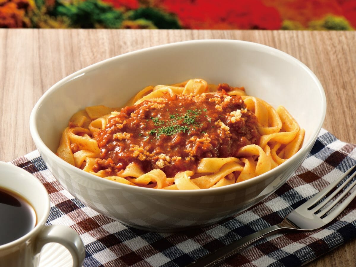 「パスタ 霧島黒豚のミートソース」は、ブランドポーク『霧島黒豚』を使用した、今回のフェアでしか味わえない数量限定の商品となっています。『霧島黒豚』の旨みを活かすため、香味野菜を使用したトマト感のあるソースに仕上げています。