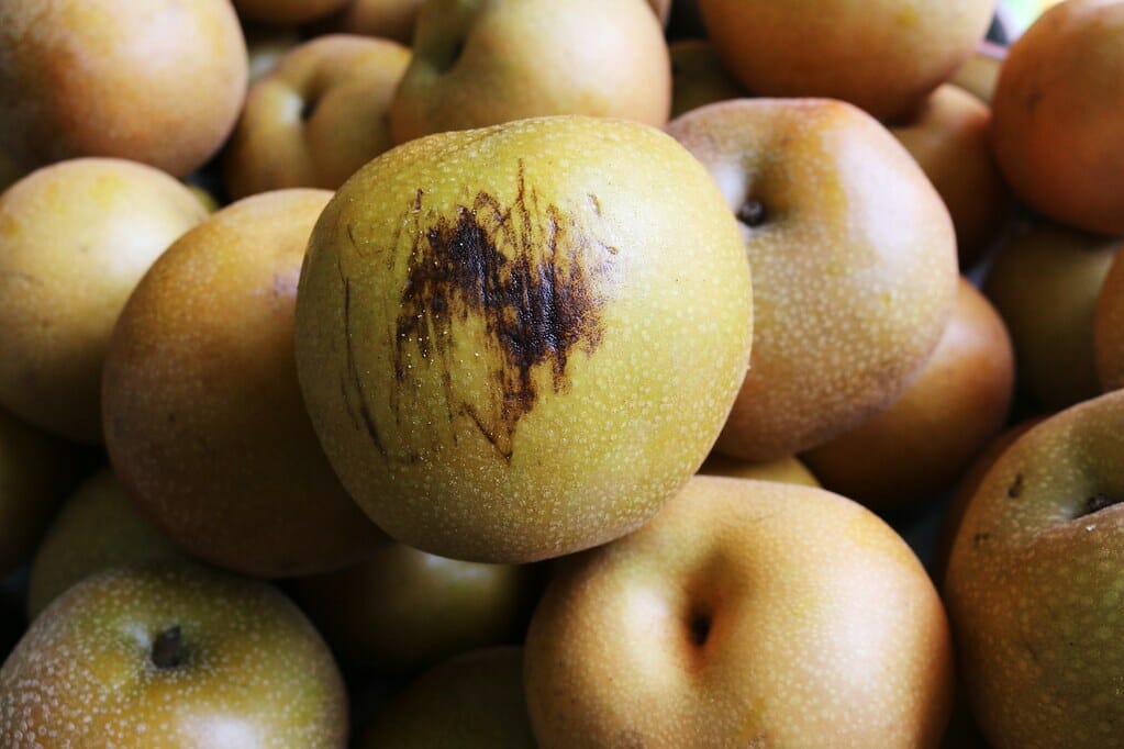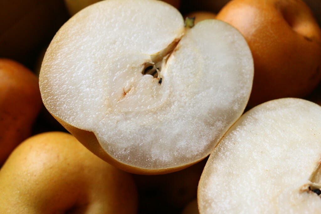 リンゴにあると喜ばれる蜜ですが、梨に発生すると特有の食感が失われるため一般販売は出来ません。