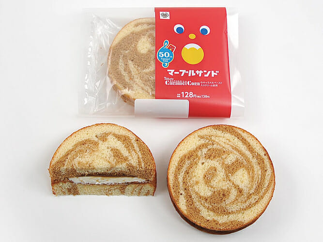 ②マーブルサンド(キャラメルコーンのキャラメルペースト入りクリーム使用)