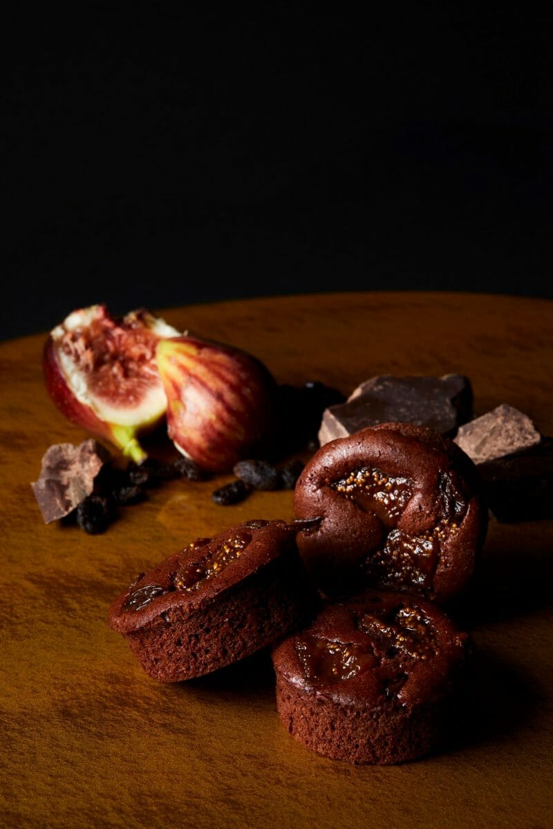 自家製カカオパウダーを配合したしっとりとしたチョコレート生地に、ラム酒に漬け込んだいちじくとレーズンを合わせた濃密な風味の焼菓子となっています。