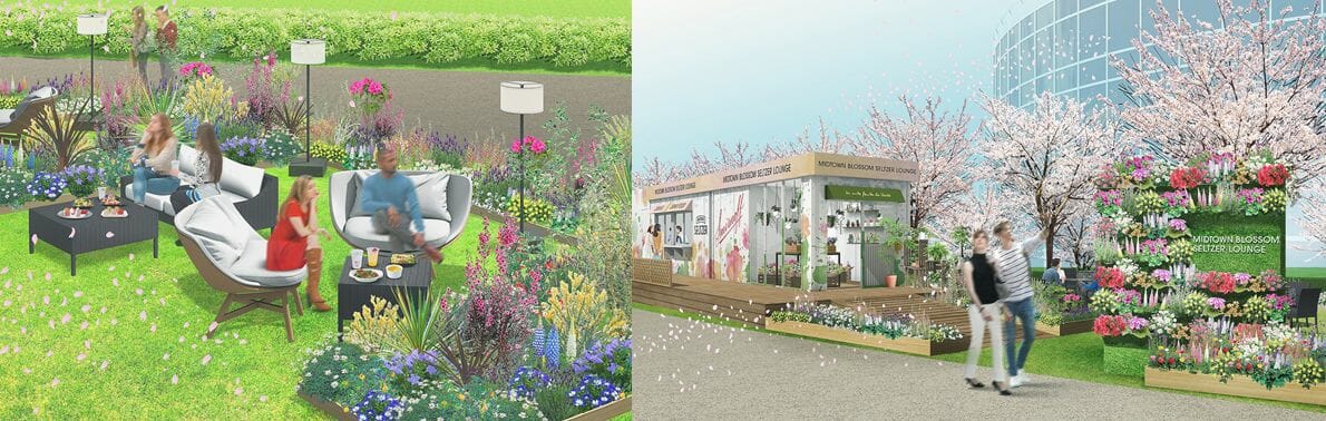 季節を通して自然を楽しめるミッドタウン・ガーデンに、期間限定の屋外ラウンジ「MIDTOWN BLOSSOM SELTZER LOUNGE」(ミッドタウン ブロッサム セルツァー ラウンジ)がオープン。