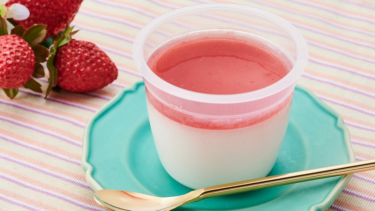 程よいミルク感と爽やかな喉ごしのパンナコッタに、甘酸っぱい苺のソースをのせました。「パンナコッタ」はイタリア発祥のスイーツとなっています。