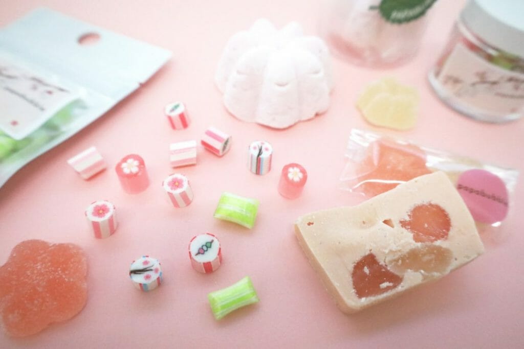 桜デザインラベルとピンクを基調とした桜にまつわるデザインのミックスキャンディは、桜の季節でなくてもウキウキした気分になれます。