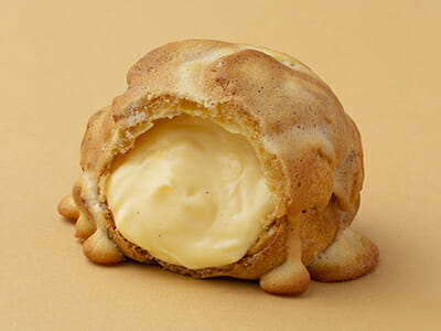 自慢のパイシュー生地にバター香るラングドシャを乗せ、丁寧に焼きあげました。ラングドシャのさっくりとした食感が音まで美味しいオリジナルシューとなっています。