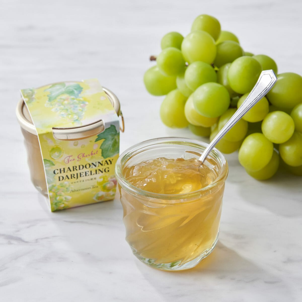 商品説明:凍らせて楽しむデザートシャーベット。アフタヌーンティー人気の味をグラスデザートに仕上げました。シャルドネダージリン、チャイ、ピーチアールグレイの3 つの香り豊かなティーの味わいを楽しめるようになっています。