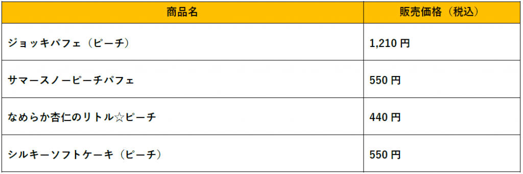 今年もパフェやケーキなどの「ピーチデザート」 全4品のラインナップを展開します。