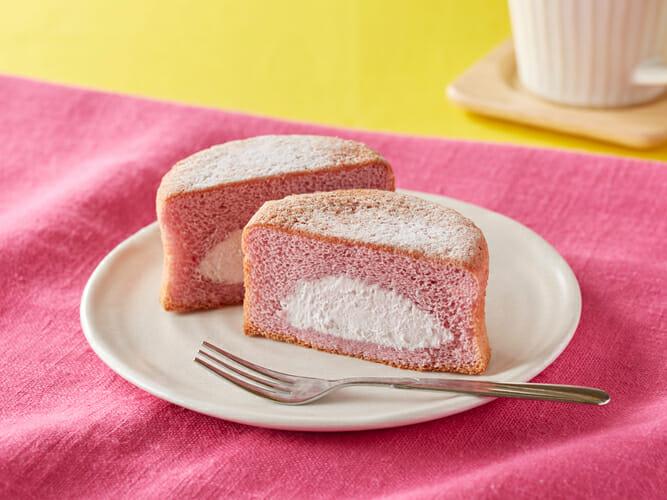 沖縄県産紅芋餡を使用した、紅芋シフォン生地に沖縄県産の紅芋の餡入りクリームを注入し、粉糖を掛けました。