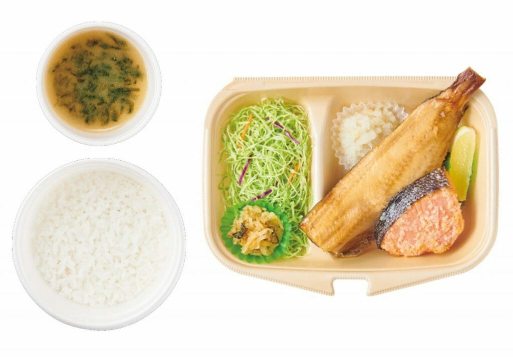 ▲[テイクアウト] 銀鮭の塩糀焼としまほっけ ごはん・あおさのみそ汁付 890円
