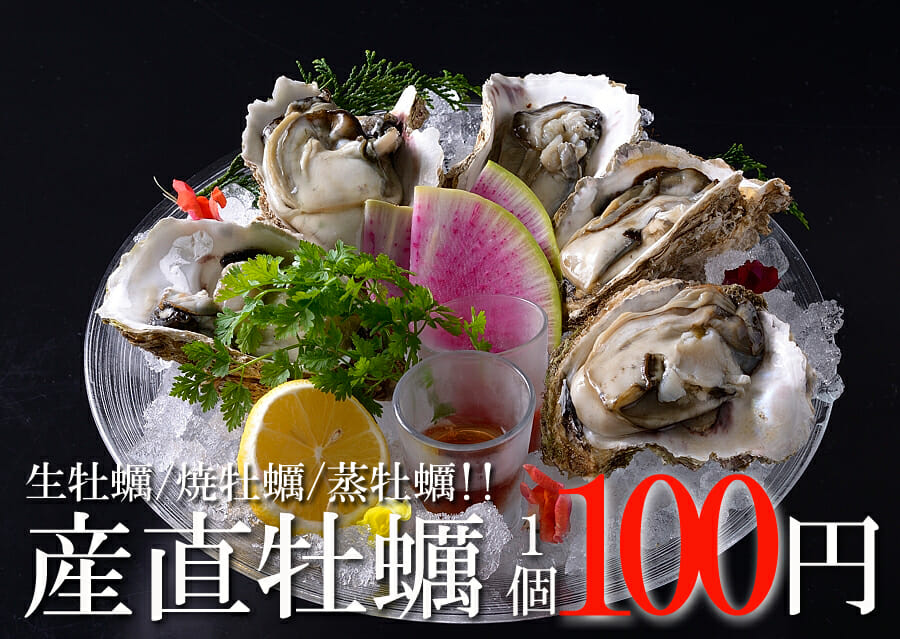 生、焼き、蒸しでもどれでもおいしい産直牡蠣を1個100円で提供します。